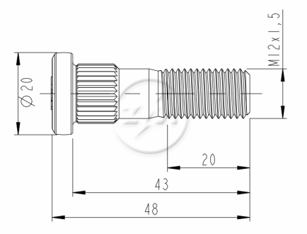 Parafuso Roda Dianteira L 200 M12-1,5X43/48 10.9 Recartilhado Zincado Branco ZM